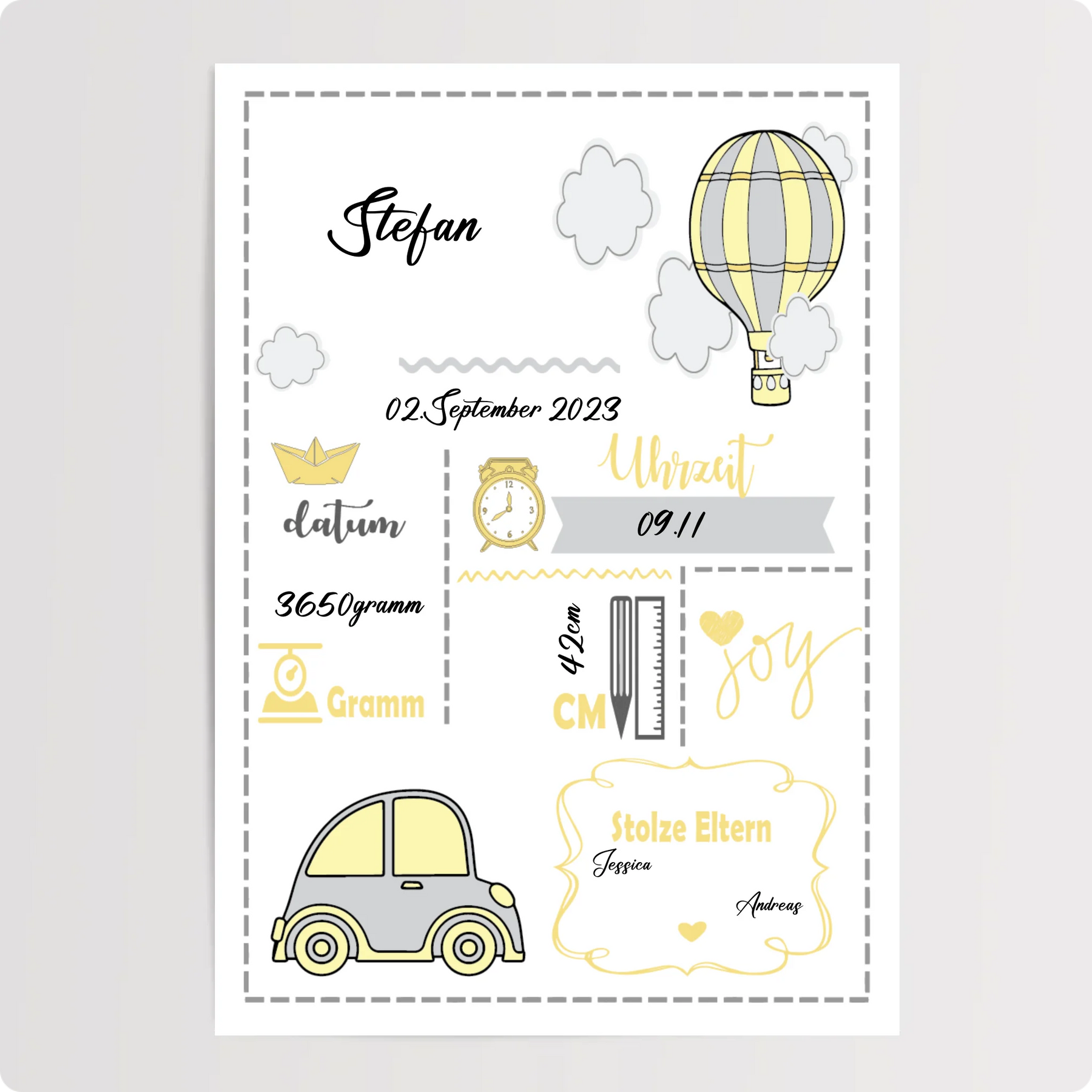 "Geburt Stefan" - Personalisiertes Poster
